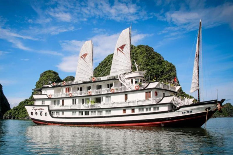 Ambassador Overnight Cruise I (120-passenger capacity), Ambassador Day Cruise II (500-passenger capacity), and Ambassador Signature Cruise (120-passenger capacity) are among the largest and most luxurious 5-star cruises in Halong Bay and Lan Ha Bay. Such exquisite ships include opulent and well-appointed cabins, deluxe restaurants featuring premium Asian-European cuisine, stylish panoramic Sundecks, an open-air Jacuzzi pool, bars, and a Spa lounge. The combination of state-of-the-art facilities and spectacular recreations makes Ambassador Cruise an impeccable destination for the most exceptional marine adventures.
